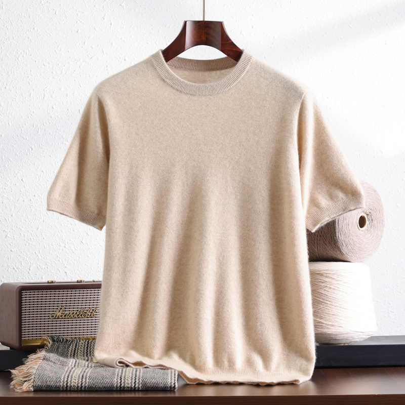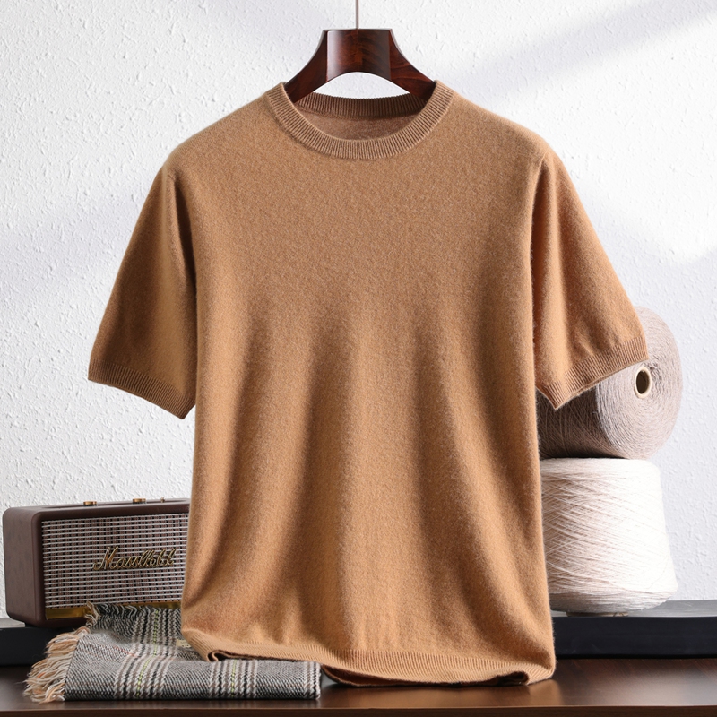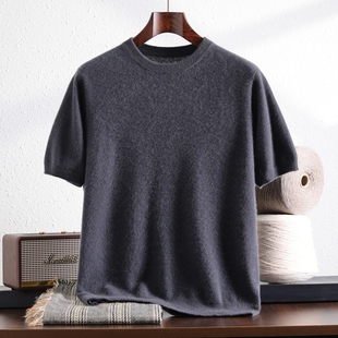 100%纯山羊绒短袖 宽松针织衫 男士 商务套头半袖 圆领时尚 25秋冬新款