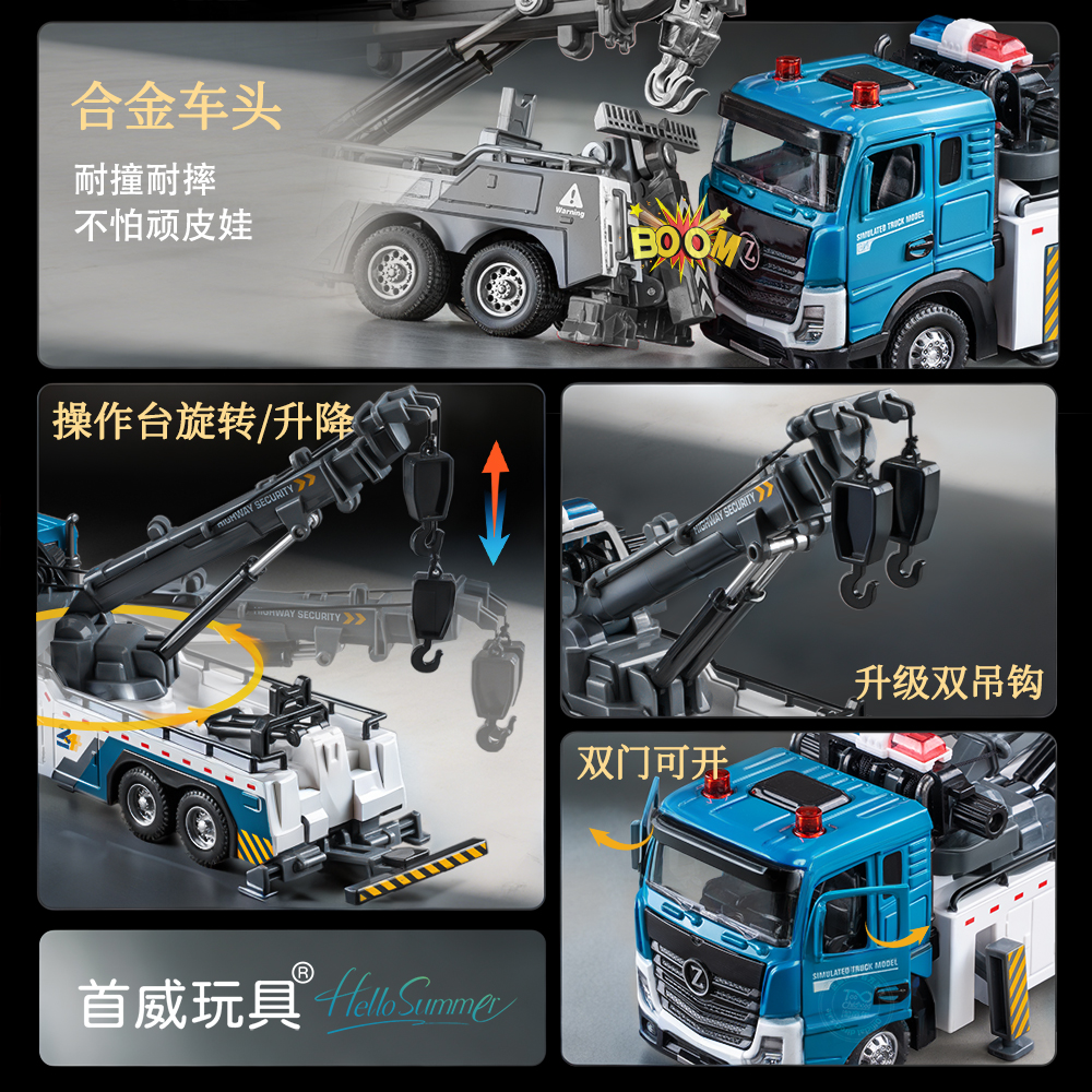 合金双钩吊车玩具儿童道路救援车拖车运输车模型仿真清障车小汽车