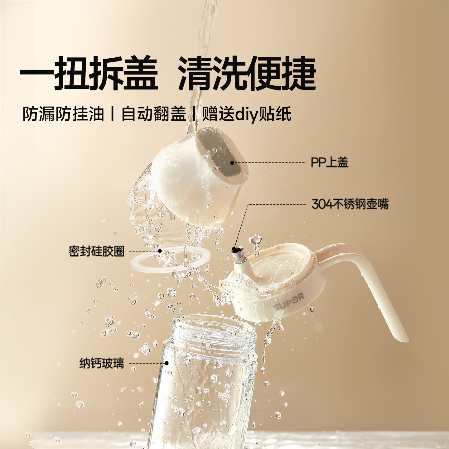 苏泊尔油壶家用厨房不挂油油瓶自动开合玻璃酱油瓶醋调料瓶食品级