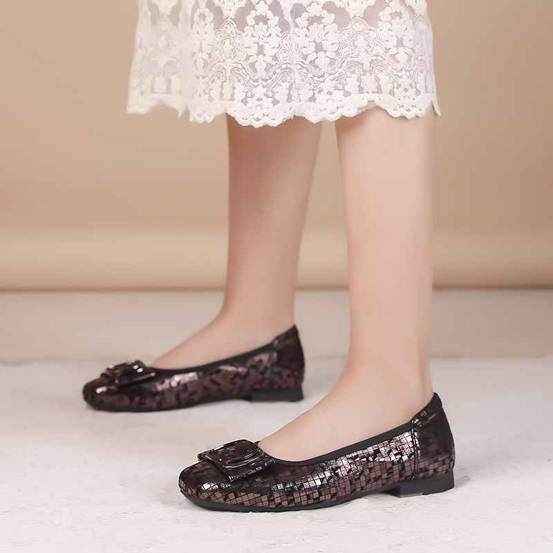 2025防滑真皮妈妈鞋 平底浅口豆豆鞋 新款 大码 超软羊皮单鞋 皮鞋 女鞋