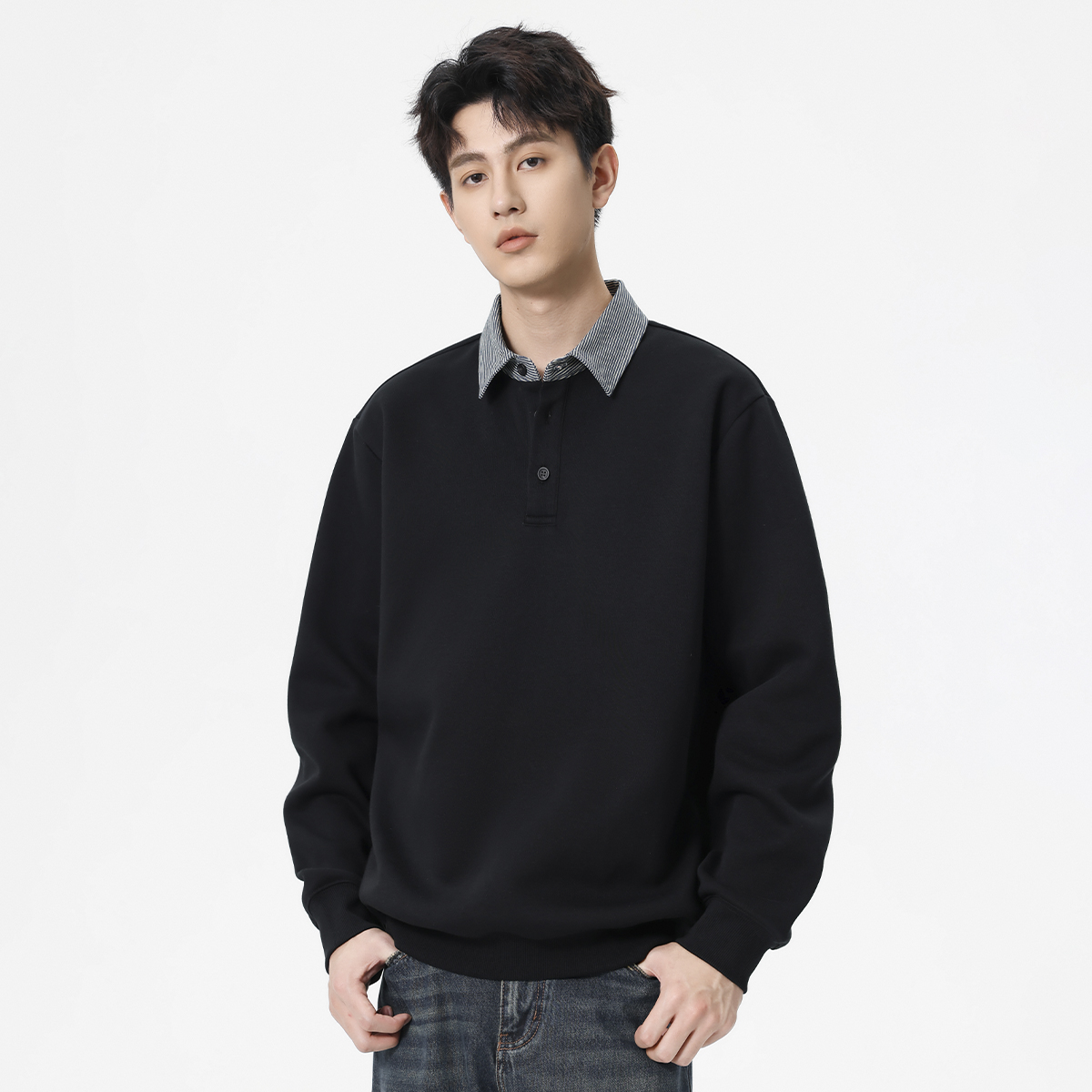 纯棉工作服卫衣定制印logo餐饮火锅店翻领文化衫 秋冬公司团队工装