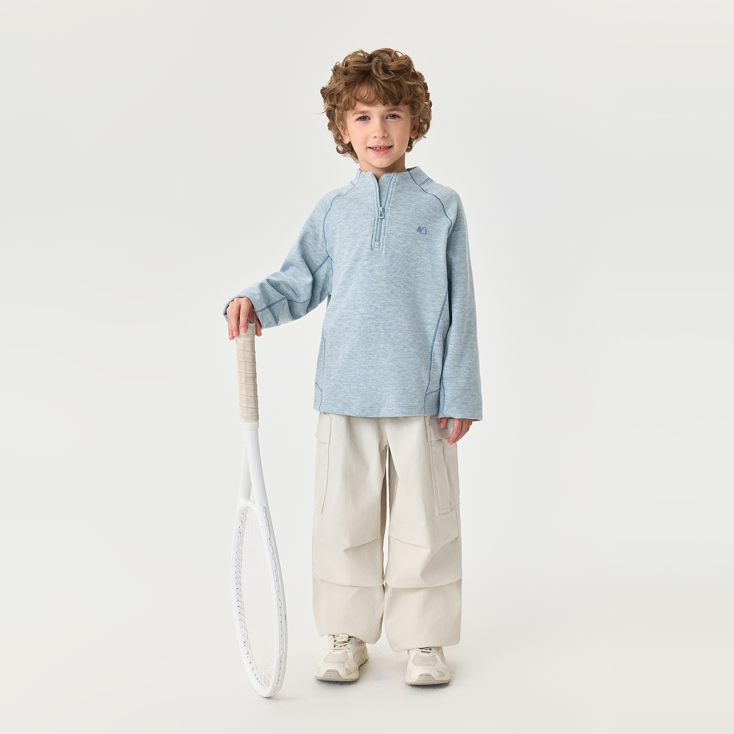 儿童T恤上衣秋装 马克珍妮男童半拉链百搭运动衫 551153 糯糯绒