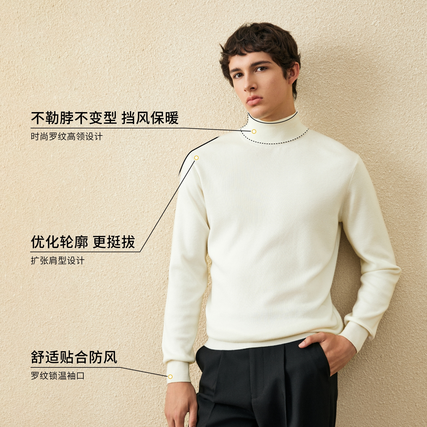 商场同款 基础纯色针织衫 森马毛衫 外套2025新款 男冬高领开衫 森柔