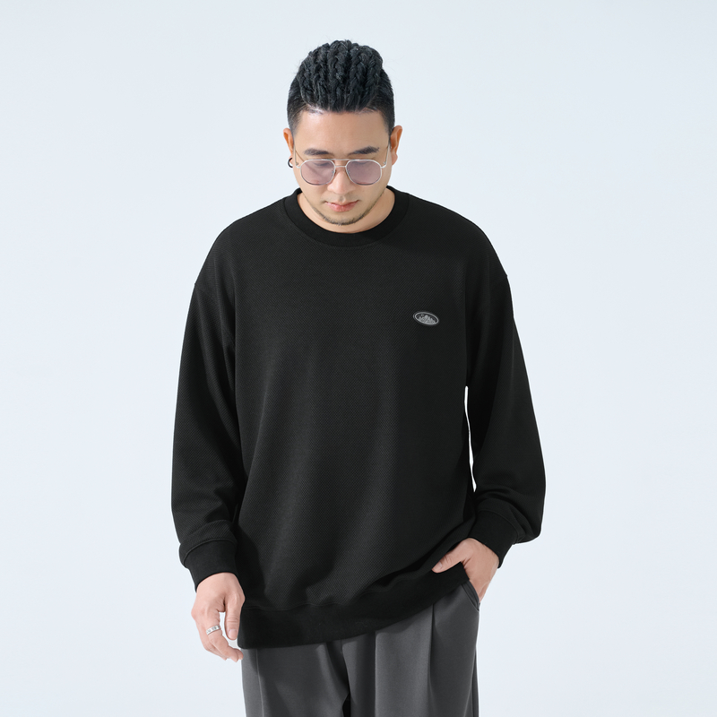 新款 半墨大码 2025秋季 圆领卫衣男士 宽松简约加肥加大胖子外套 男装