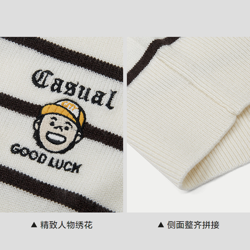 时尚 发热保暖翻领绣花针织衫 学院风 男撞色假两件毛衣冬季 森马毛衫