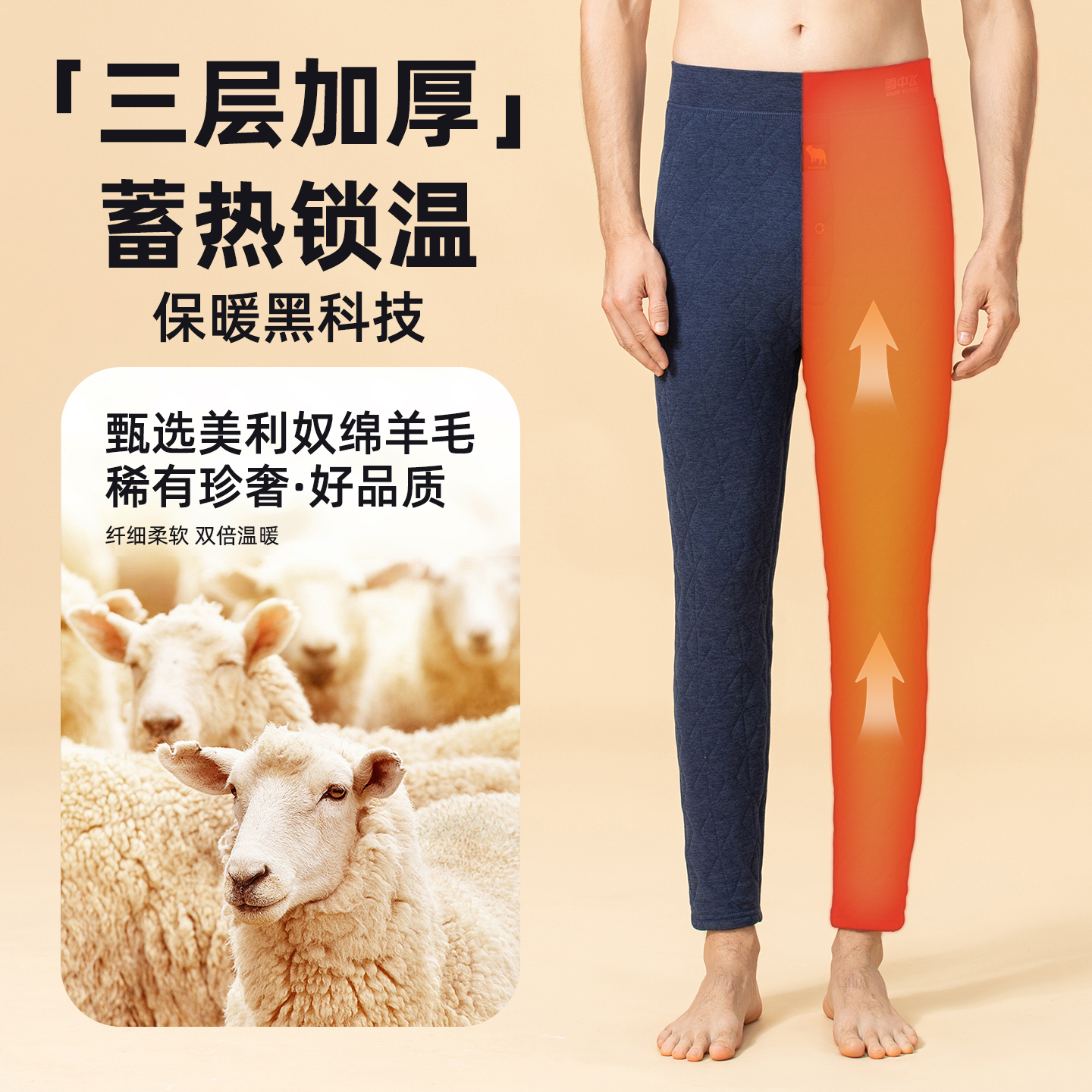 男款 冬季 棉裤 雅鹿保暖裤 羊毛秋裤 加厚加绒发热打底线裤 德绒裤 男士