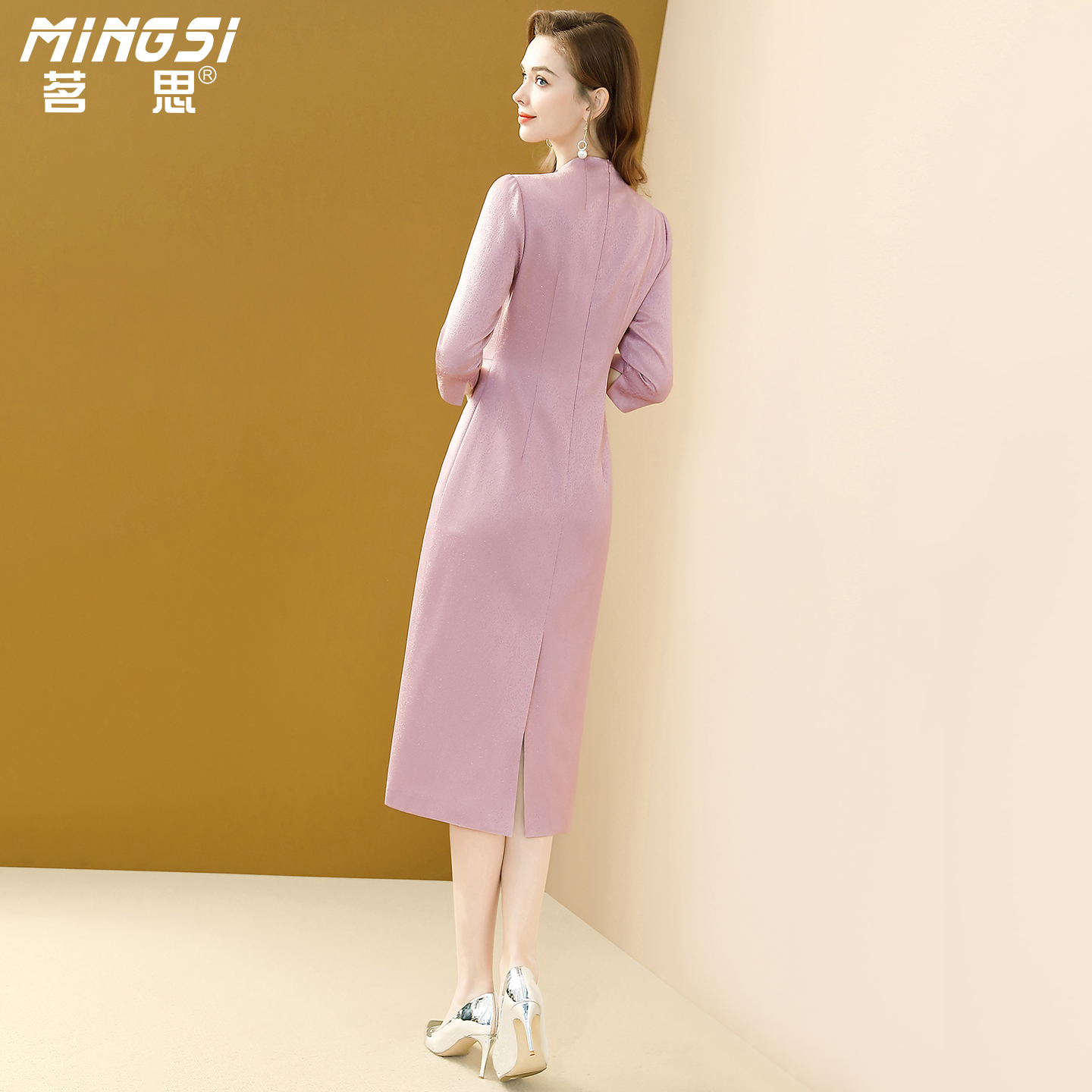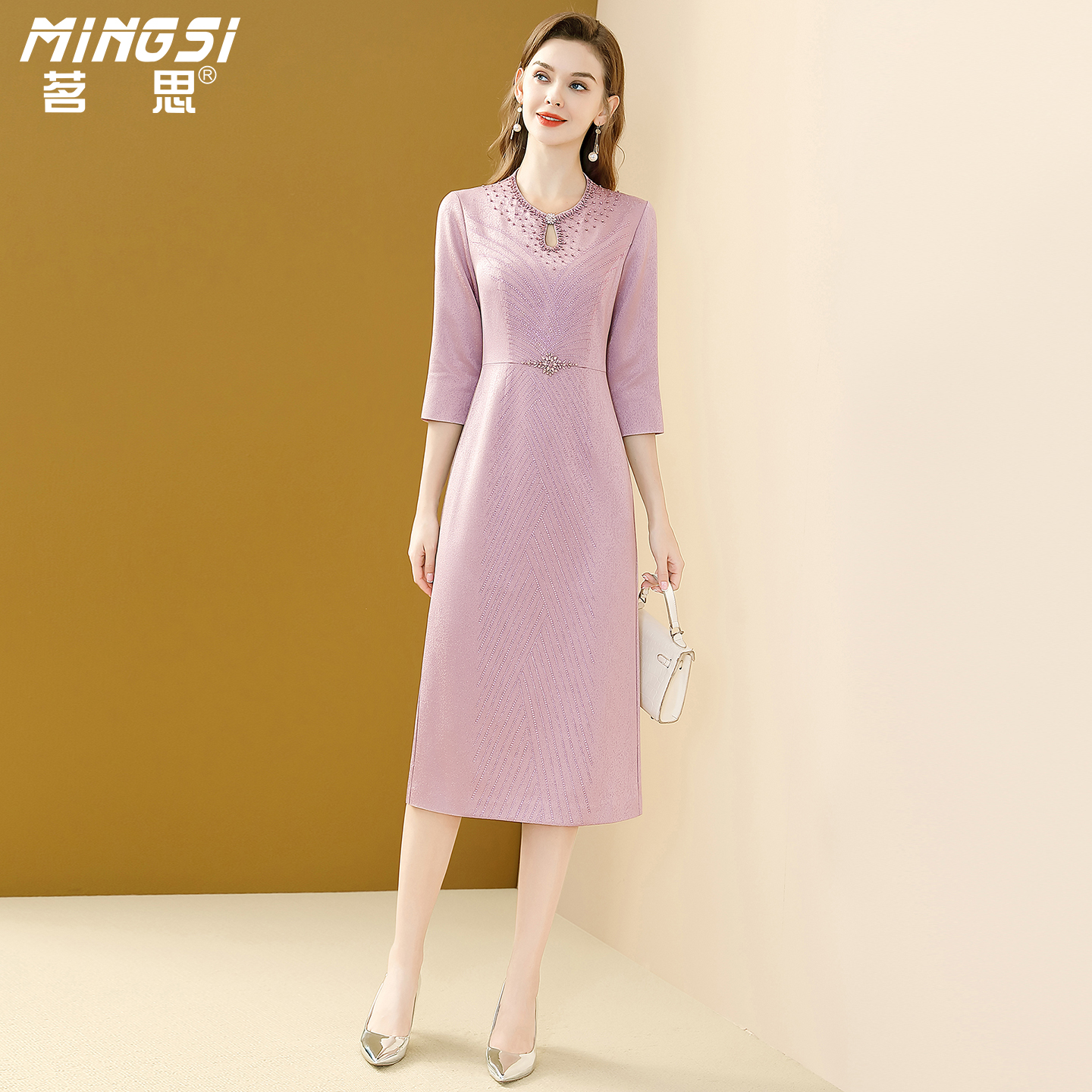 茗思重要场合醋酸连衣裙女秋季 粉色气质镶钻减龄显瘦裙子 2025新款