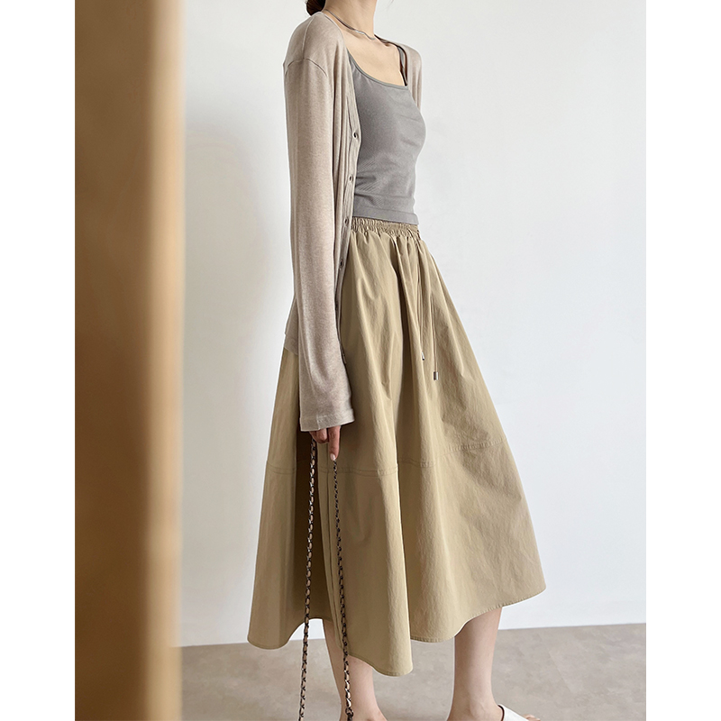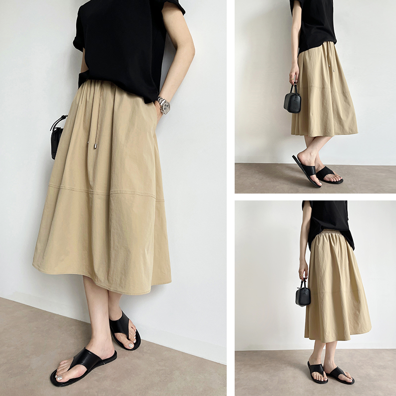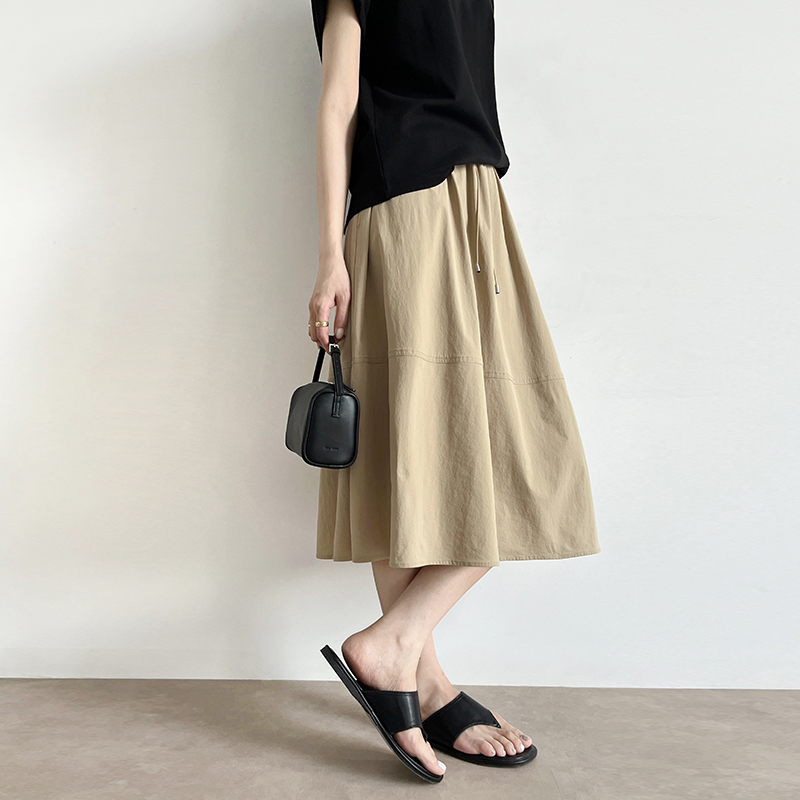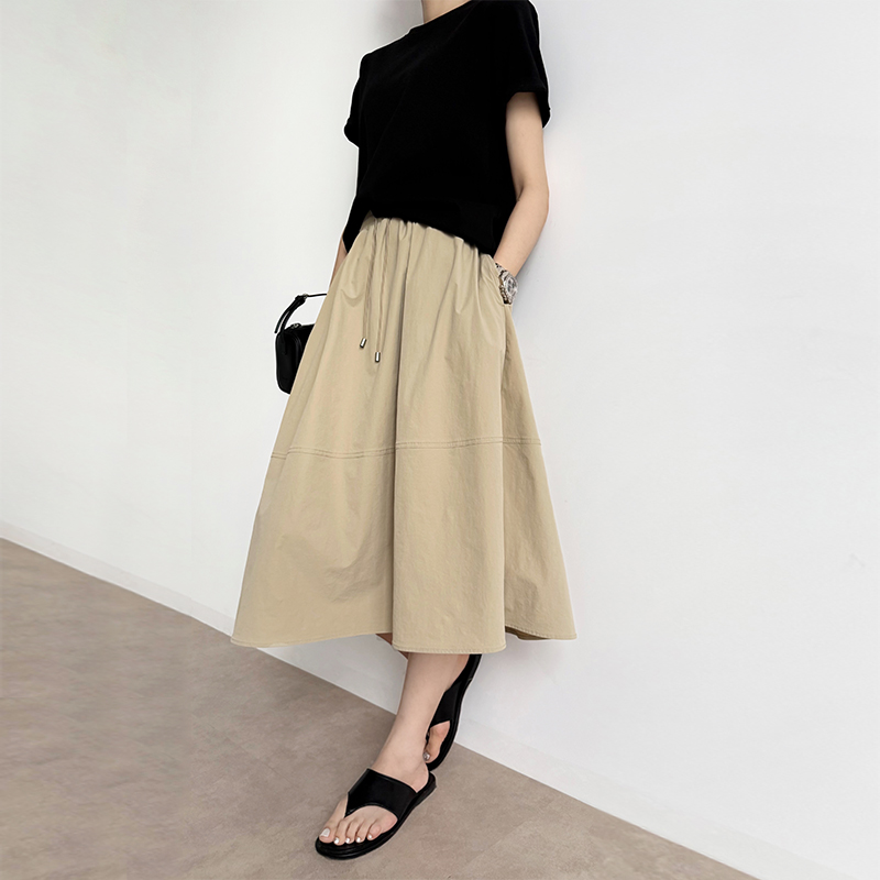 黑色高腰抗皱速干伞裙女夏2025春秋新款 小个子休闲百搭纯色半身裙