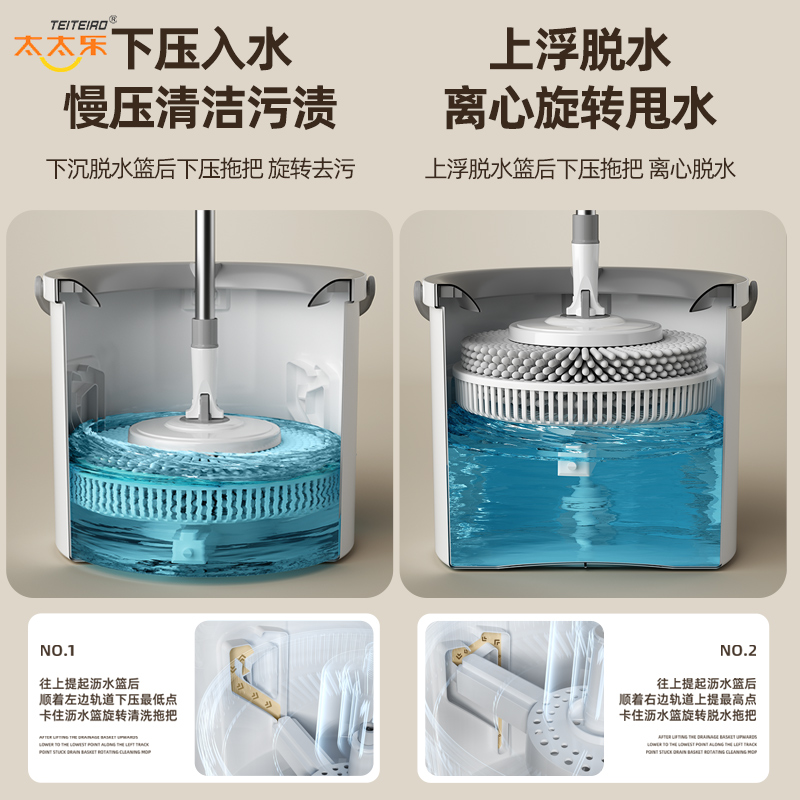 太太乐2024新款 免手洗拖把家用懒人自动旋转墩布地拖布一拖净脱水