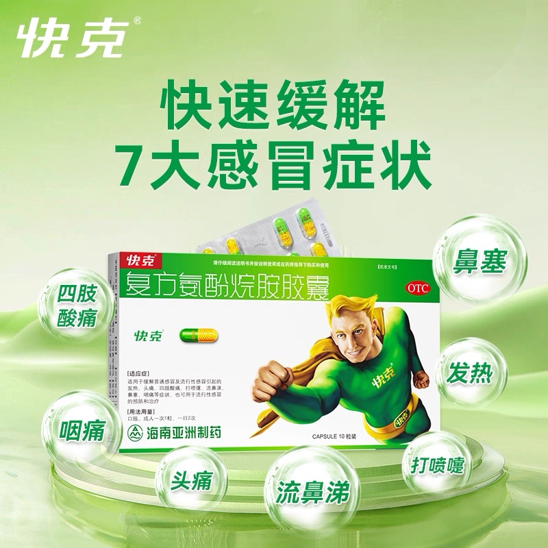 快克复方氨酚烷胺胶囊药正品 感冒药感冒胶囊发热头痛流鼻涕鼻塞LY
