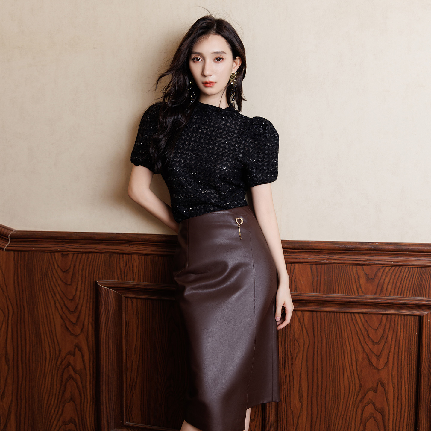侧开叉不规则皮裙高腰中长款 新款 奕辰2025秋季 半身裙 商场同款
