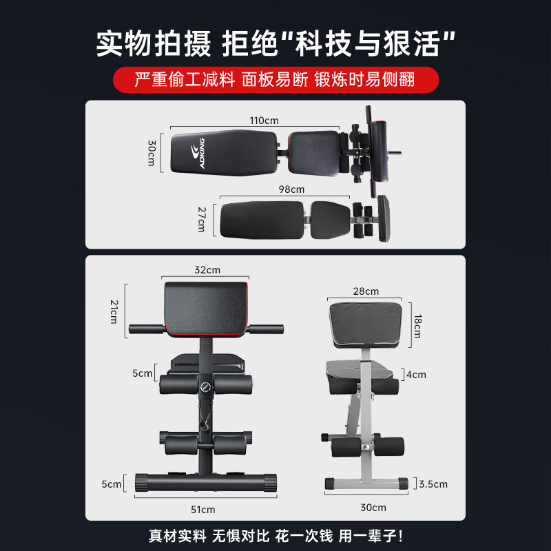 哑铃凳仰卧起坐辅助器健身器材家用男士 多功能锻炼运动飞鸟卧推椅