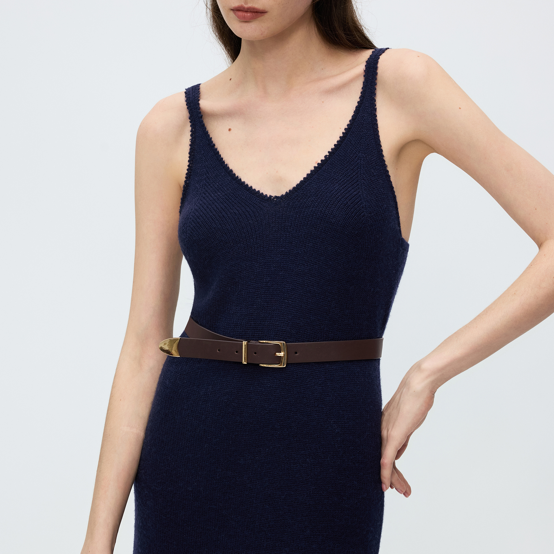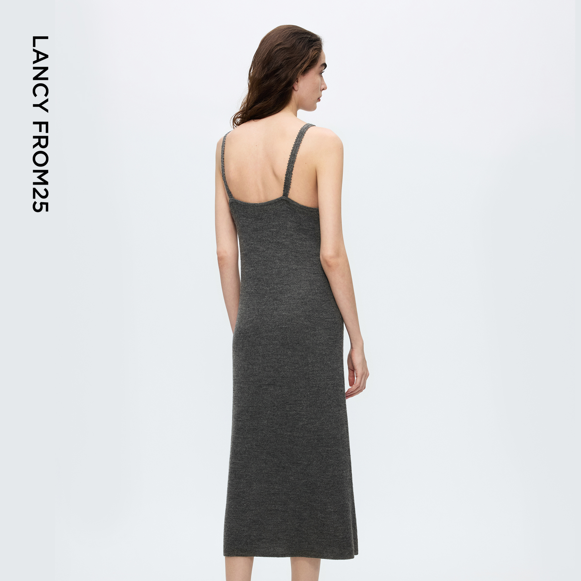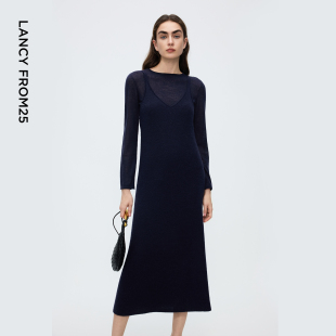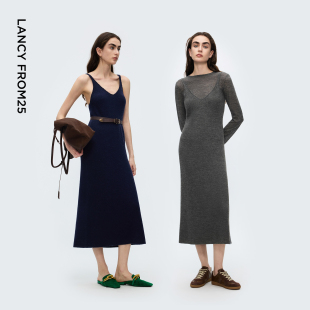 新款 优雅露背含羊毛2025年冬季 吊带针织连衣裙修身 朗姿高级感罩衫