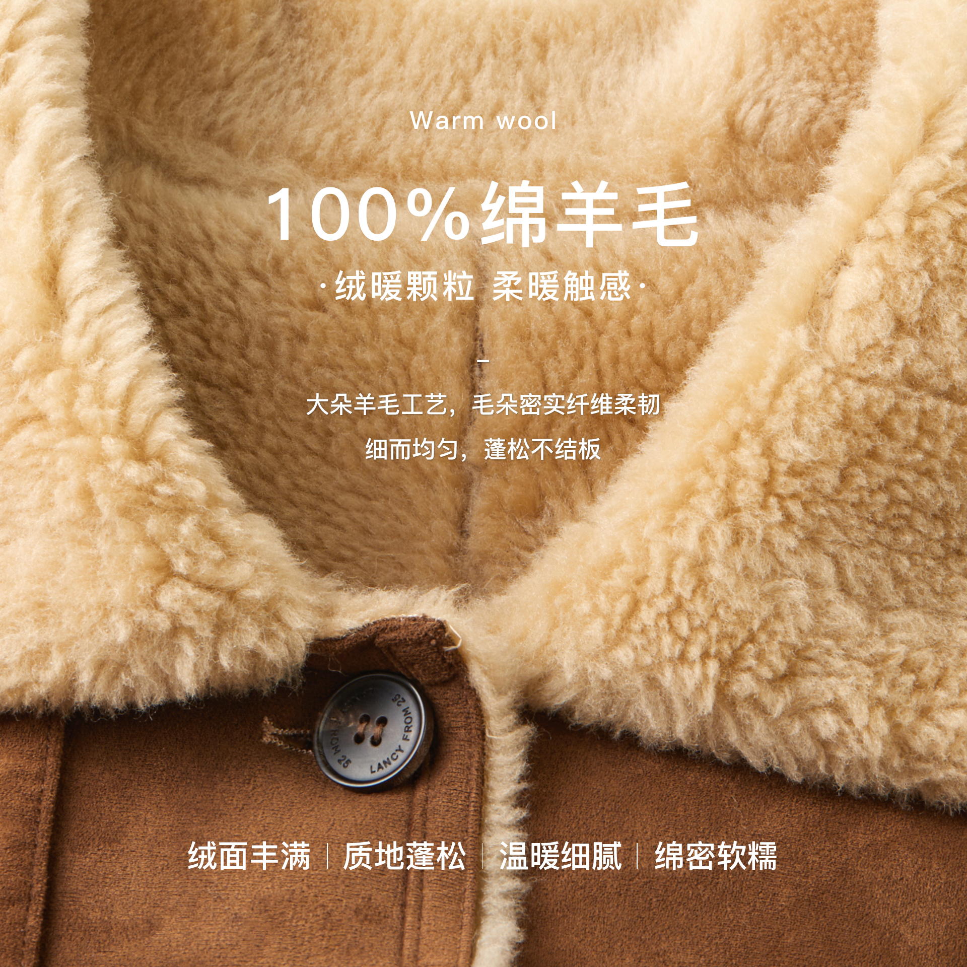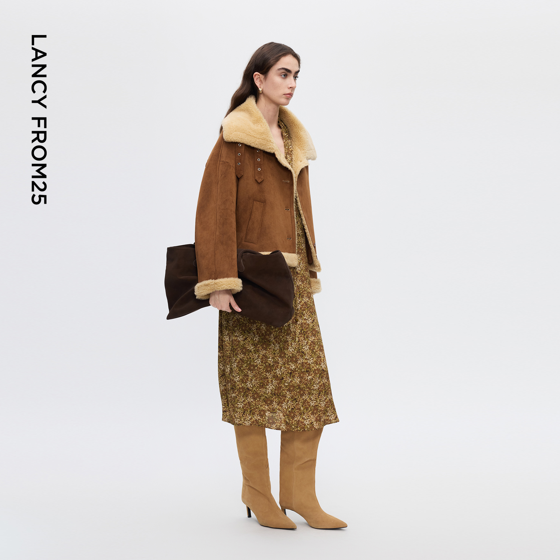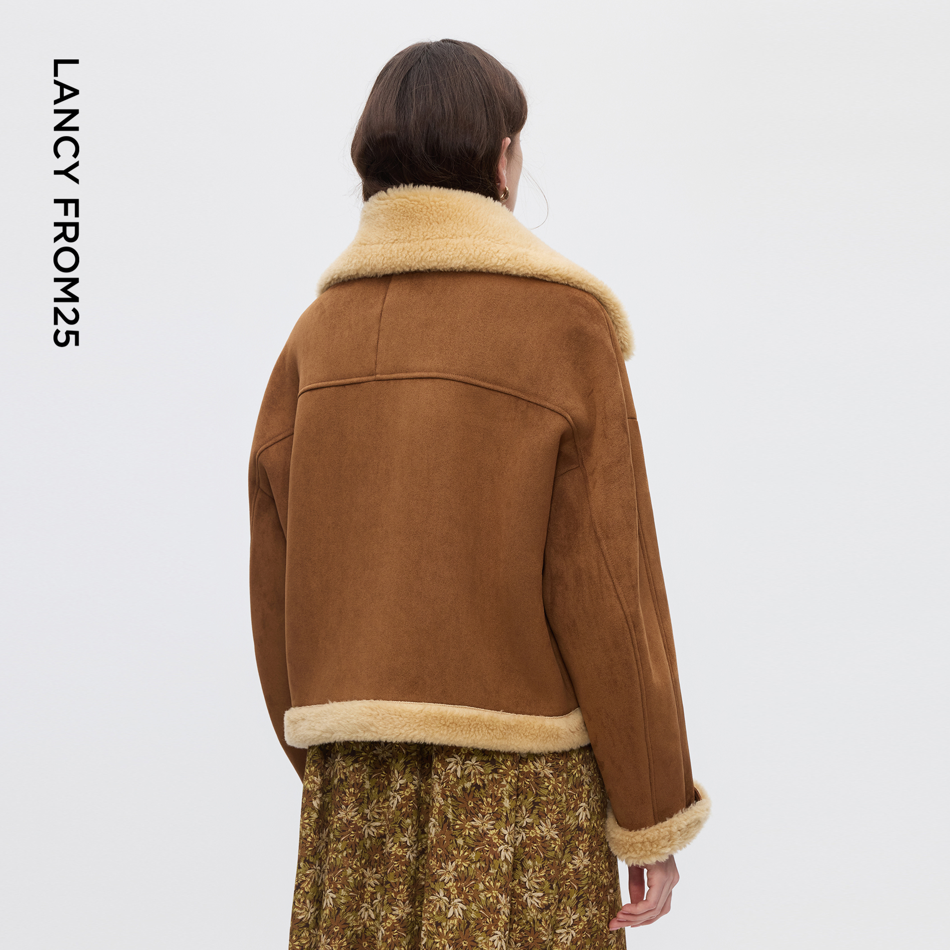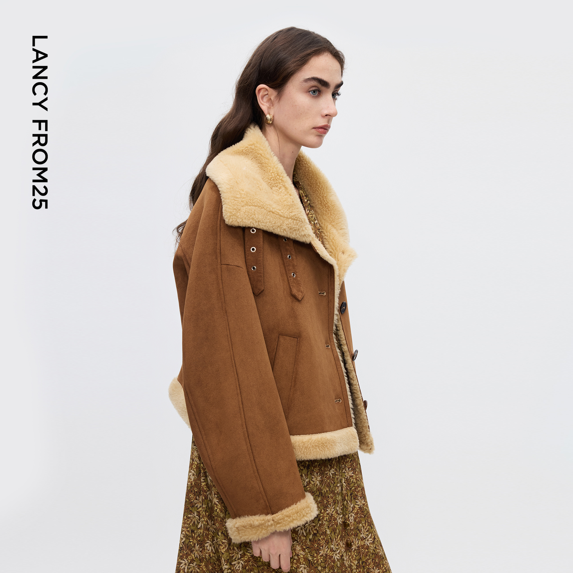 朗姿大翻领设计感颗粒羊毛仿皮草外套女气质高级感2025年冬季 新款