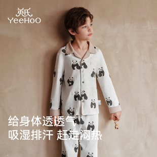 套装 a类抑菌家居服男孩纯棉衬衫 熊猫 2025新款 英氏儿童睡衣秋冬季