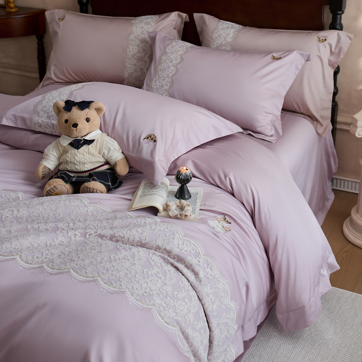 TeenieWeenie高端100全棉长绒棉床单四件套法式 蕾丝花边纯棉被套