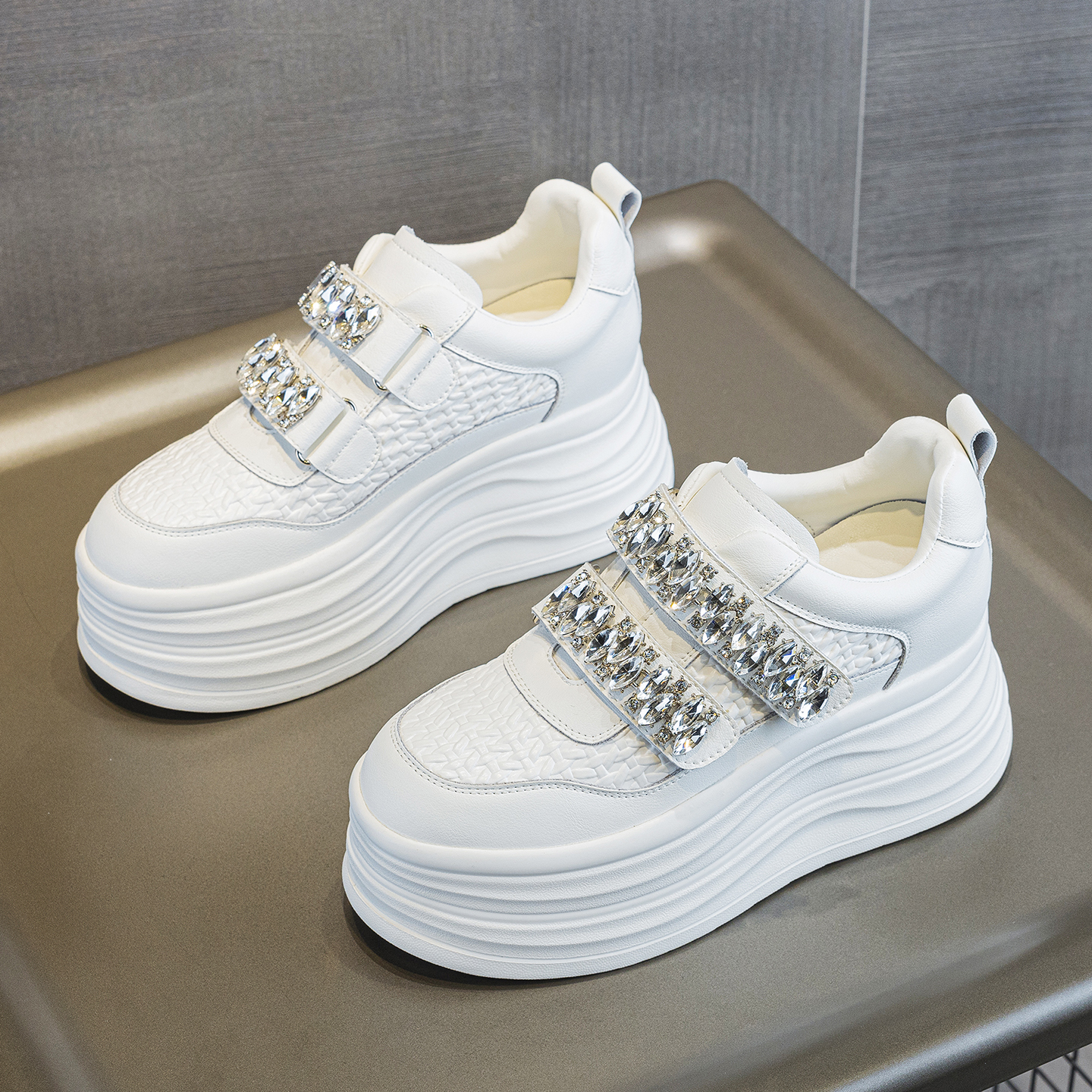 厚底小个子轻便休闲鞋 魔术贴真皮内增高小白鞋 时尚 新款 女2025秋季