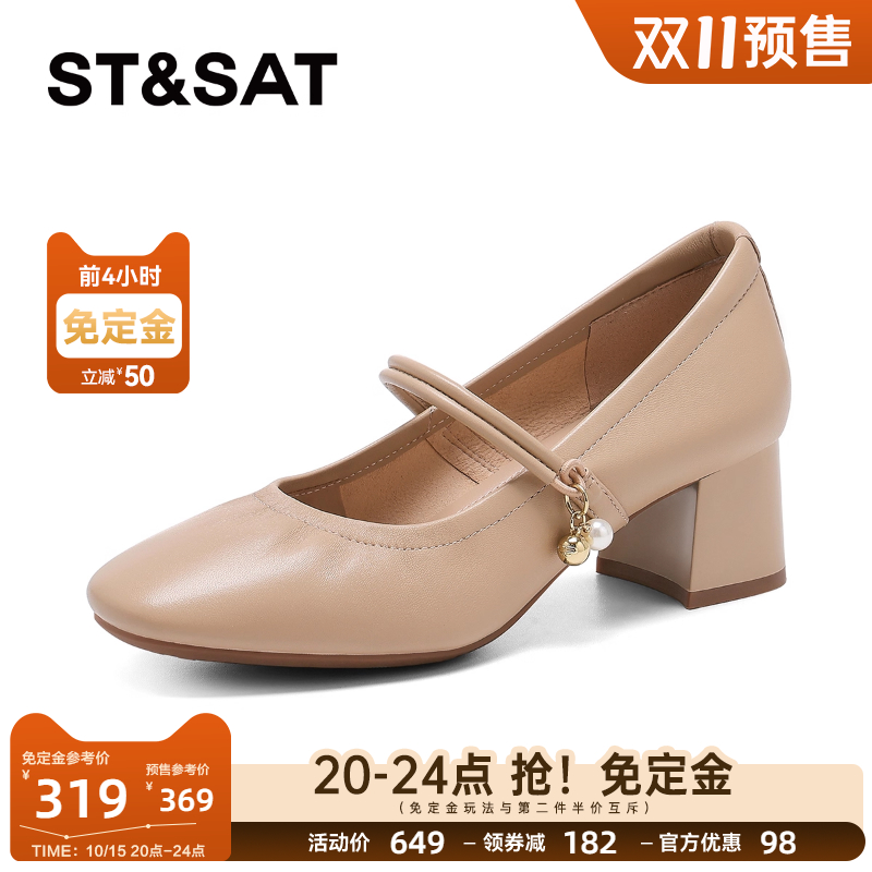 大女主 婚鞋 百思图25秋新款 尖头女浅口单鞋 裸色高跟鞋 双11预售