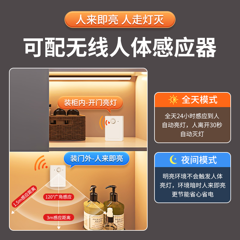 遥控充电感应灯带免线插电玄关鞋 柜灯条无线LED酒柜展示柜直角灯