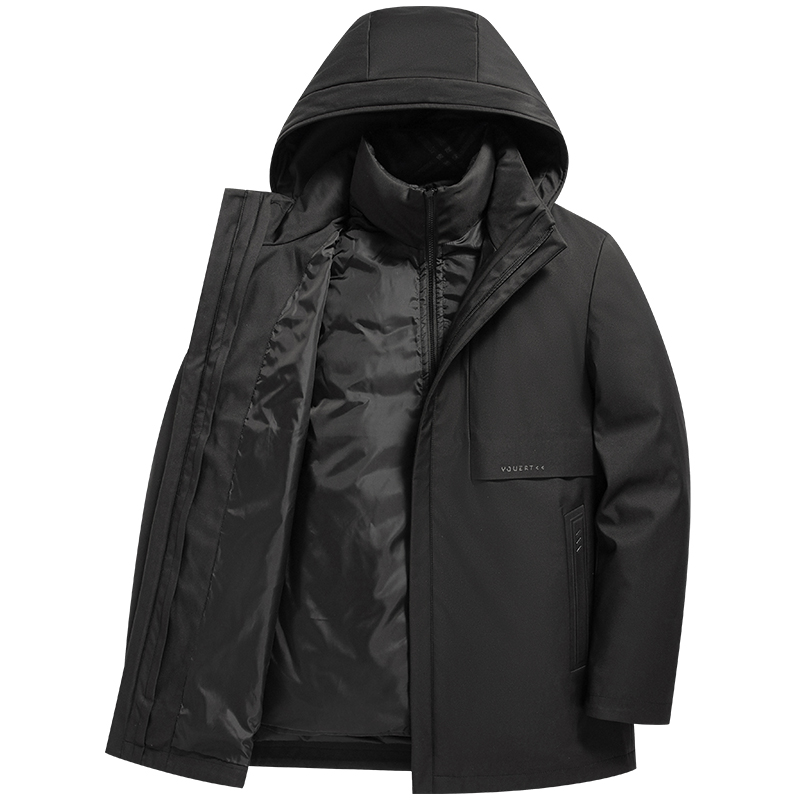 标时尚 雪中飞2025冬新款 羽绒服简约袖 连帽长款 加厚大气百搭 男士