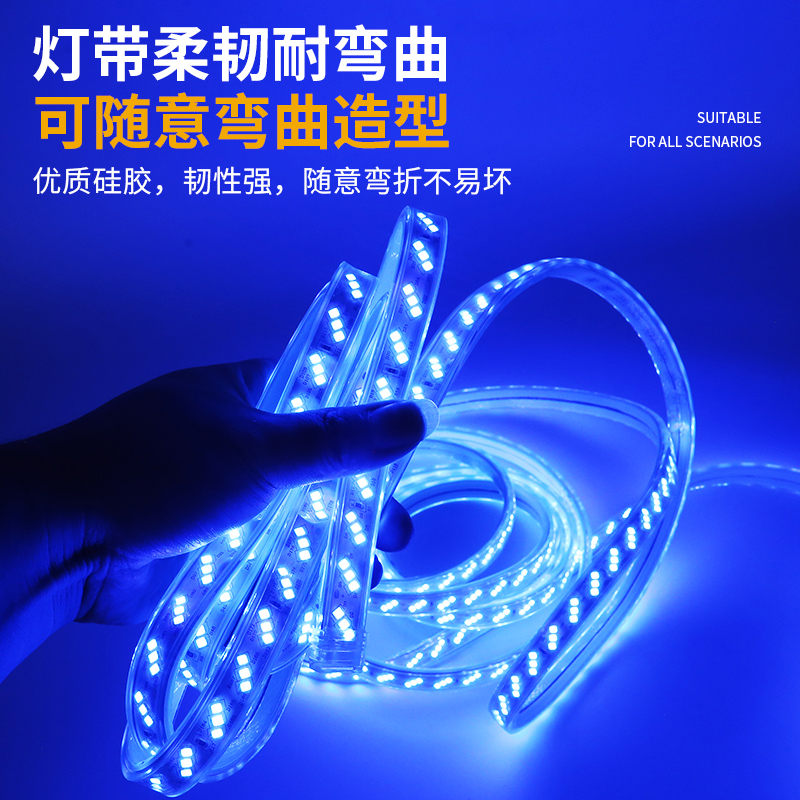 220v蓝色led灯带户外防水家用吊顶电竞房台球厅酒吧ktv氛围软灯条