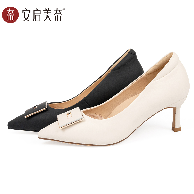 安启美奈足弓方扣气质细跟高跟鞋 舒适羊皮内里百搭通勤单鞋