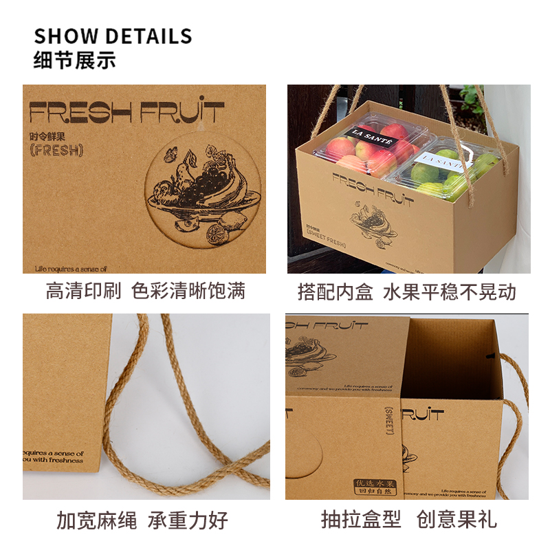 牛皮纸法式 盒高档水果礼盒端午水果礼品盒鲜花通用空盒子 水果包装
