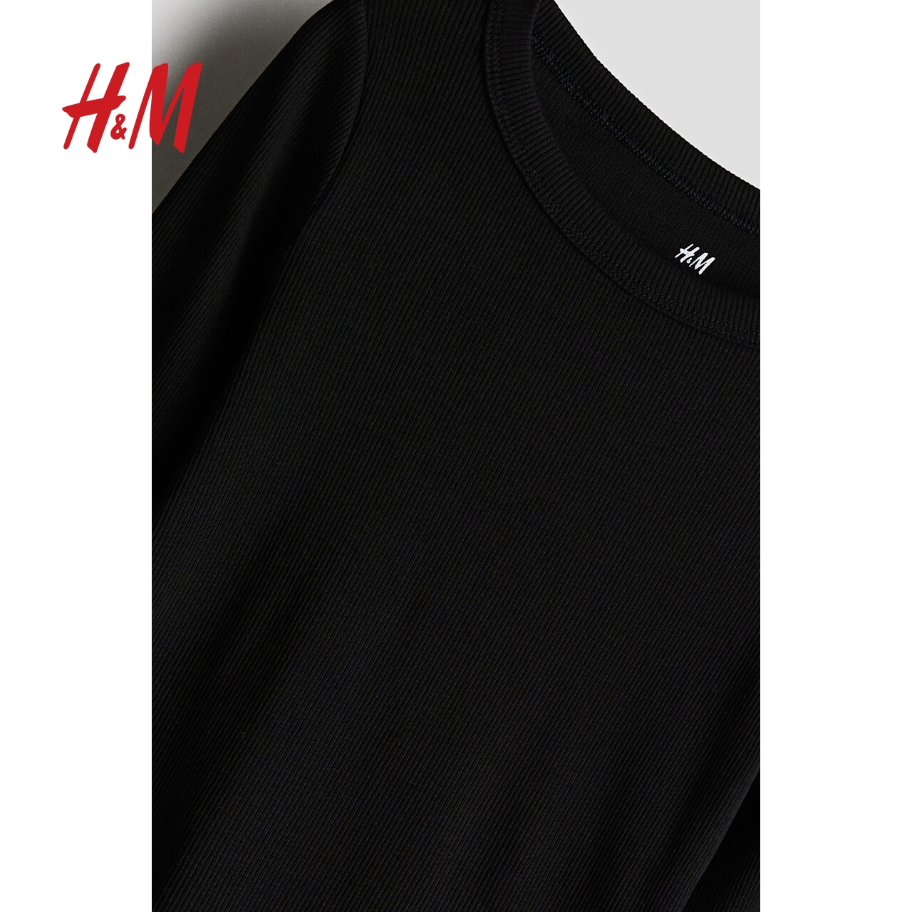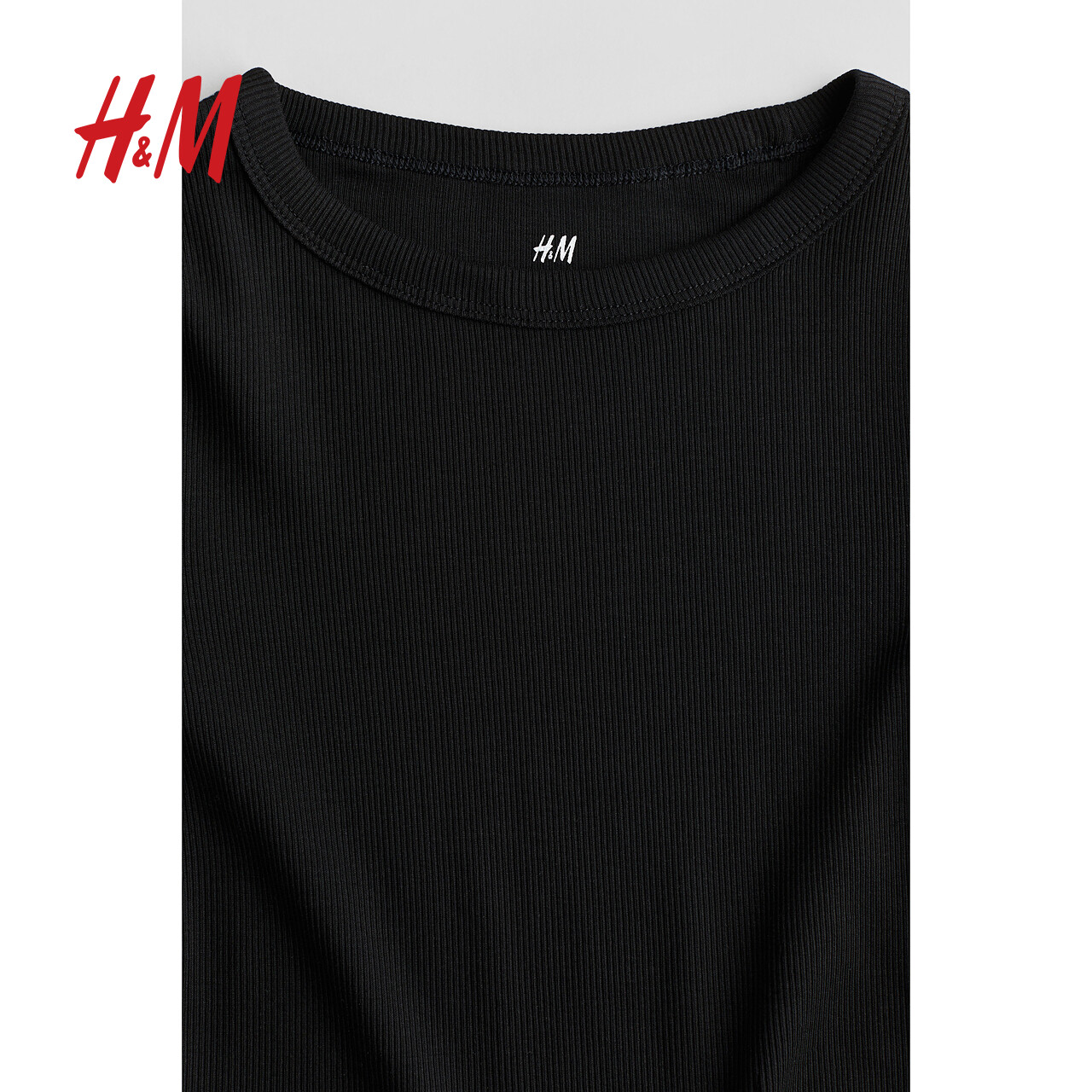 罗纹长袖 柔软修身 圆领休闲上衣1241315 儿童女童T恤秋季 HM童装