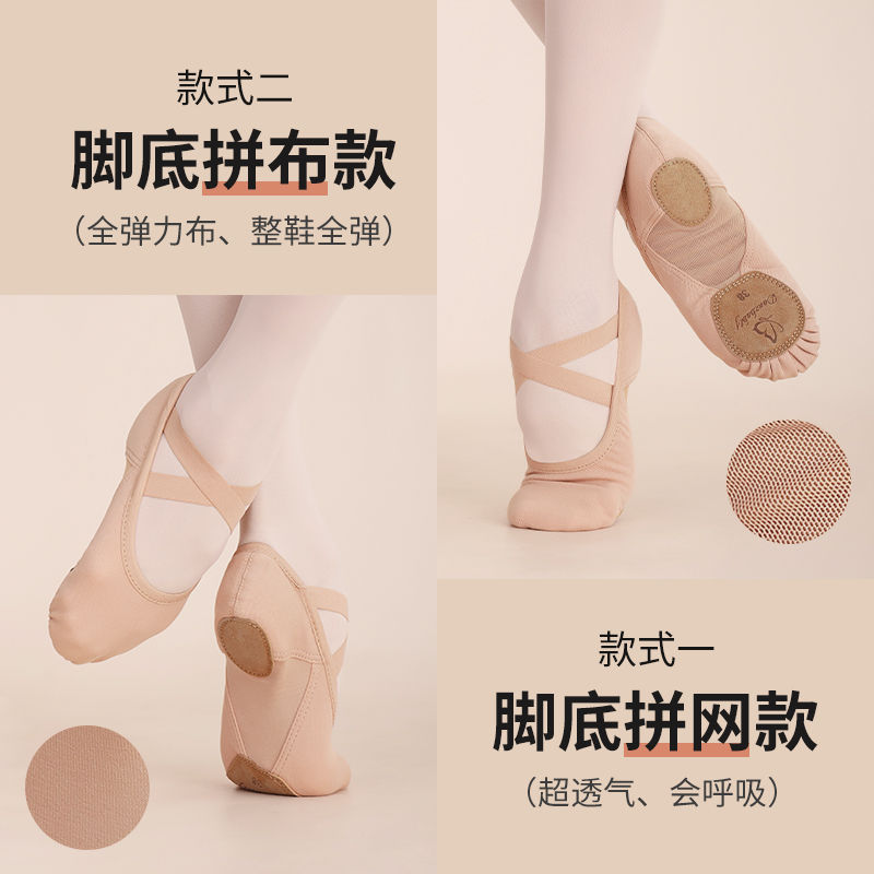 形体芭蕾鞋 成人儿童女童猫爪鞋 女软底练功鞋 danzbaby弹力布舞蹈鞋