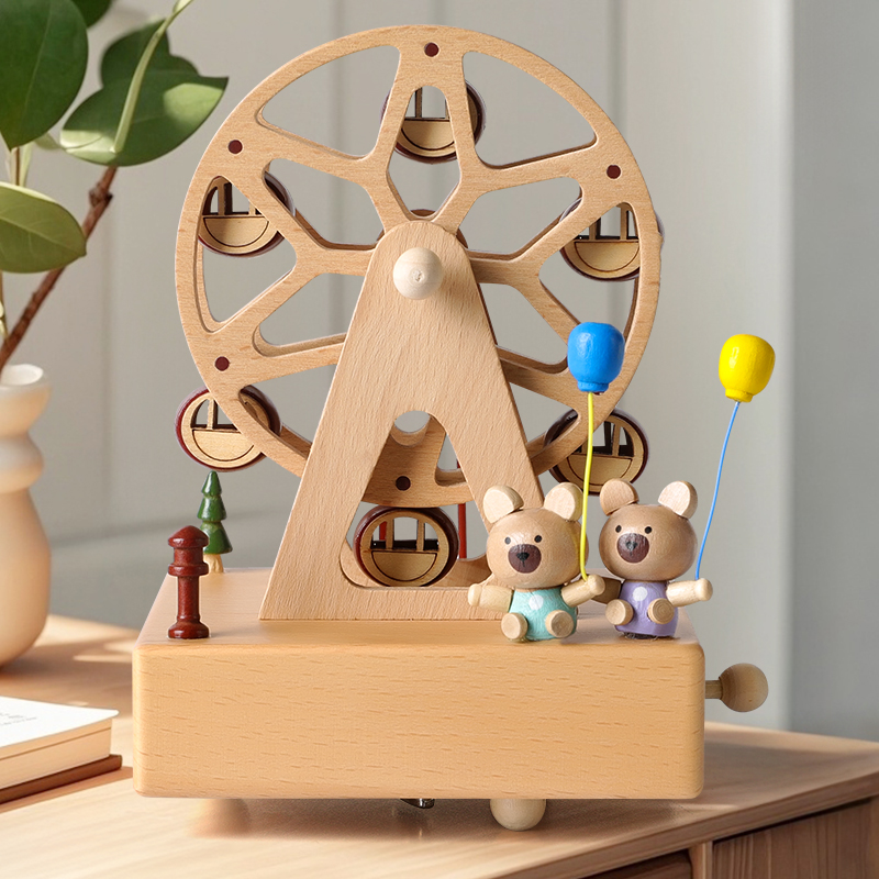 旋转木马机械发条音乐盒八音盒创意生日礼物女孩儿童玩具木质摆件