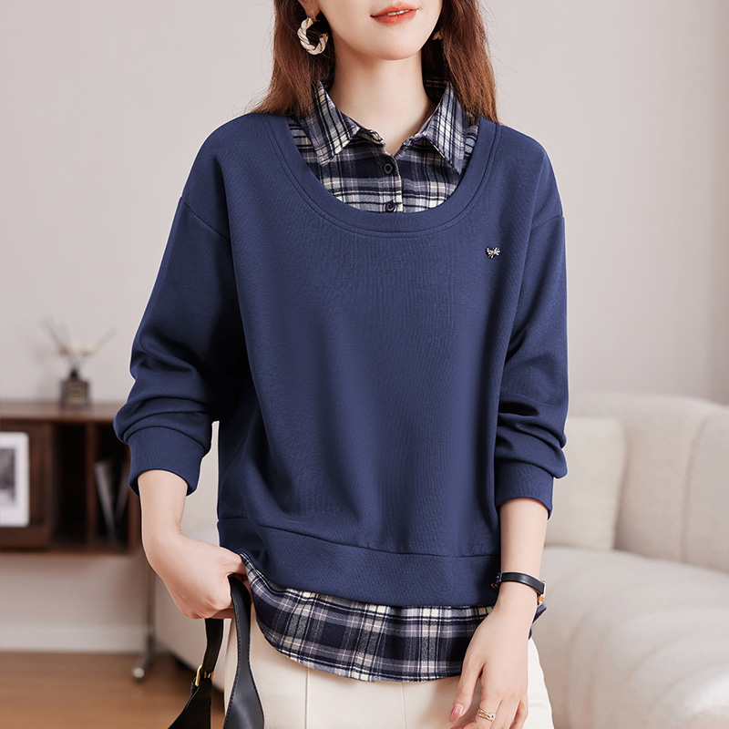 女装 早秋爆款 中年宽松上衣外套 2024年新款 假两件有领卫衣女春秋款