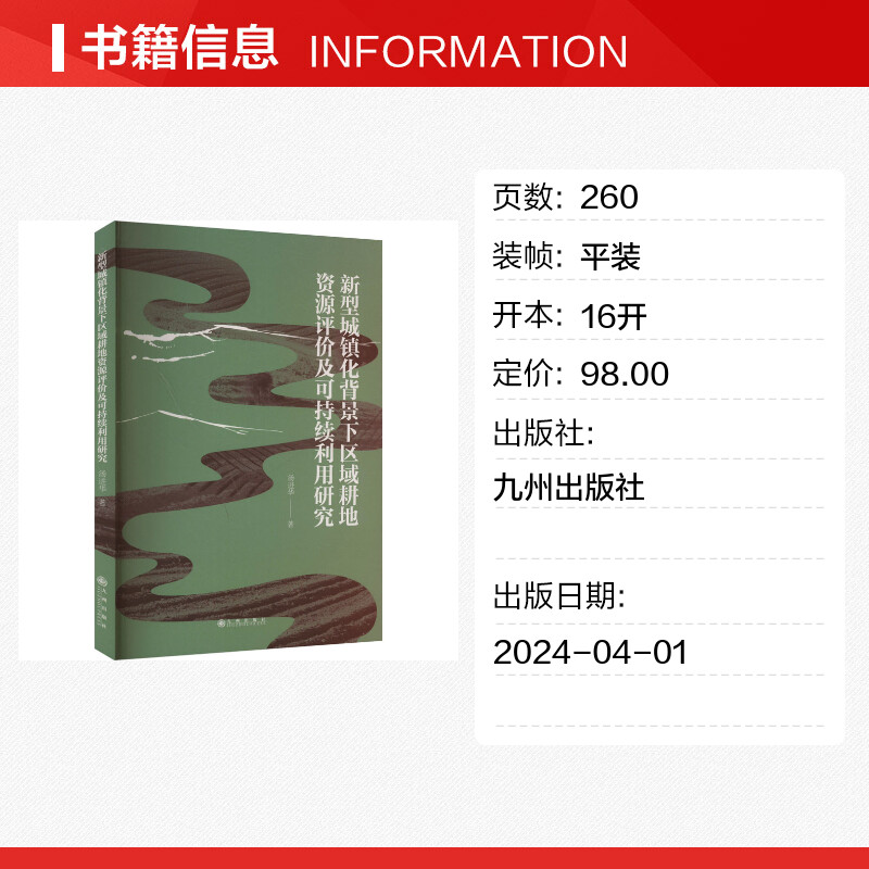 各部门经济经管 励志 新华书店正版 新型城镇化背景下区域耕地资源评价及可持续利用研究 九州出版 著 图书籍 社 汤进华