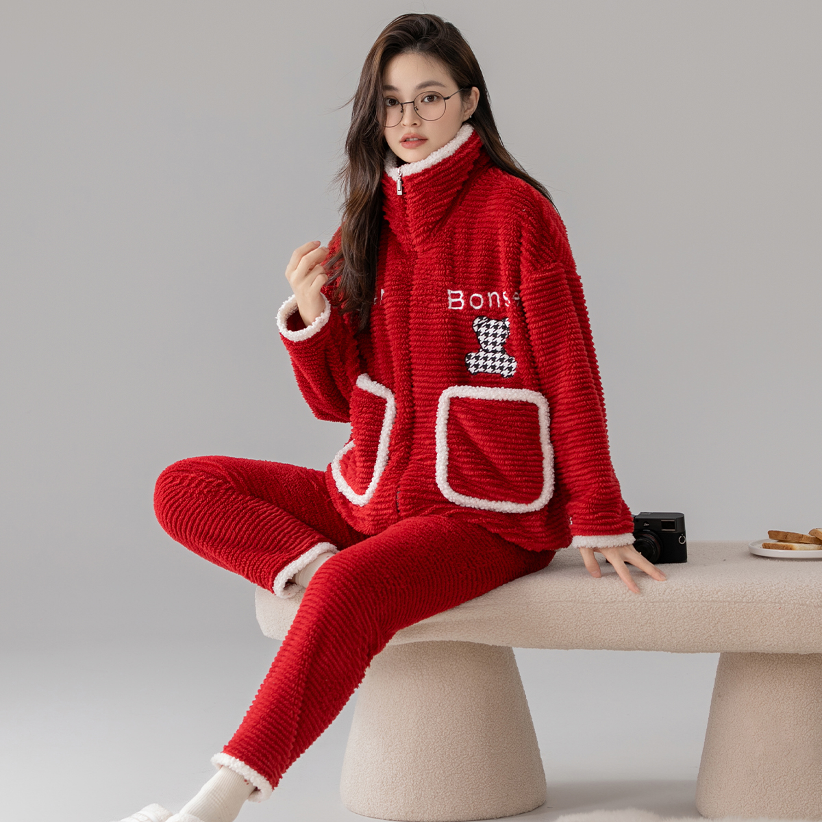 半边绒保暖女士家居服套装 mikko联名新款 果壳睡衣女冬季 Gukoo