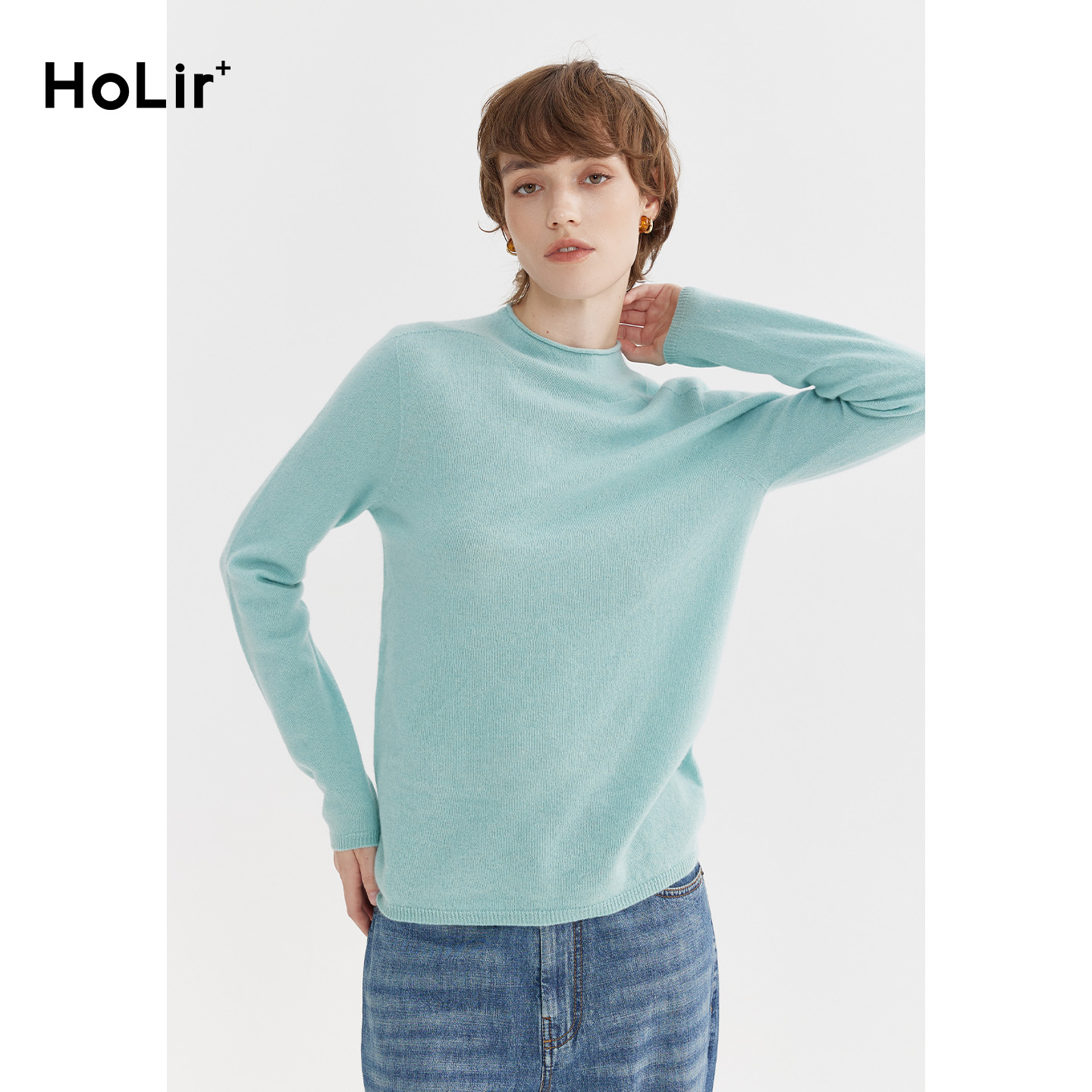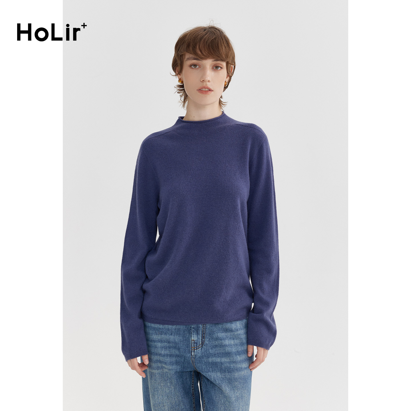百搭打底衫 洪陵 长袖 羊绒纯山羊绒卷边领套头衫 7660 秋冬新款