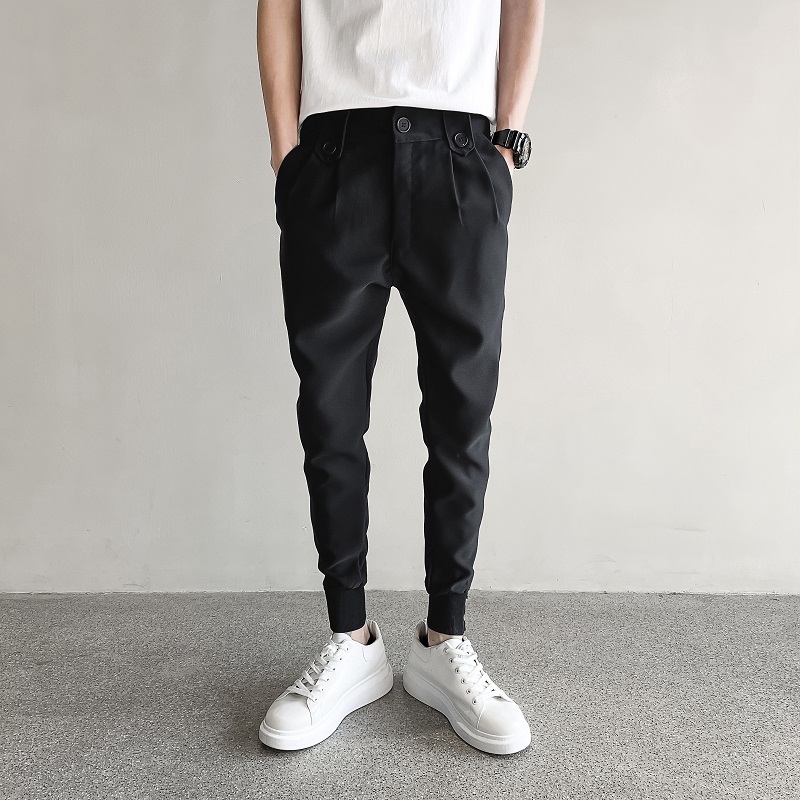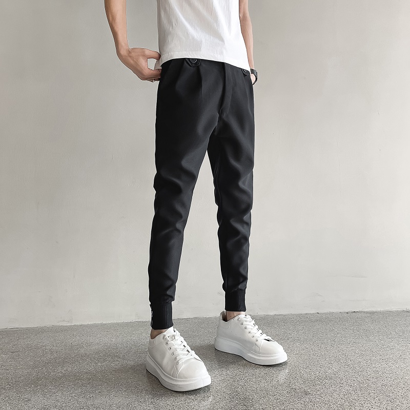 女春秋新款 休闲直筒慵懒松弛感裤 高腰垂感窄版 裤 子 西装 黑色阔腿裤