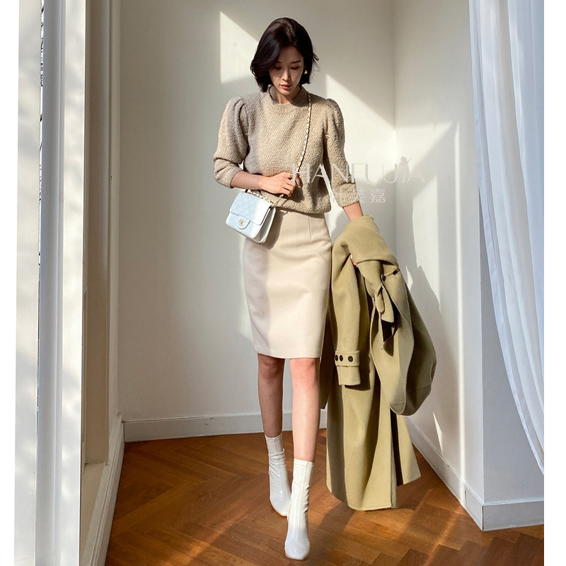 OCHIRLY欧时力 直筒长裙半身裙开衩气质通勤显瘦高级流行秋冬新品