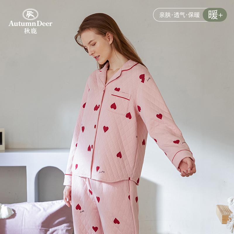 甜美空气棉夹层纯棉冬季 秋鹿清仓仅剩M码 薄夹棉睡衣女春秋季
