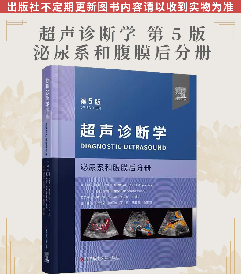 郑元 义译 附动图 超声诊断学 科学技术文献出版 :泌尿系和腹膜后分册 超声基础解剖学常见疾病临床表现分型及超声诊断特点 社 第5版