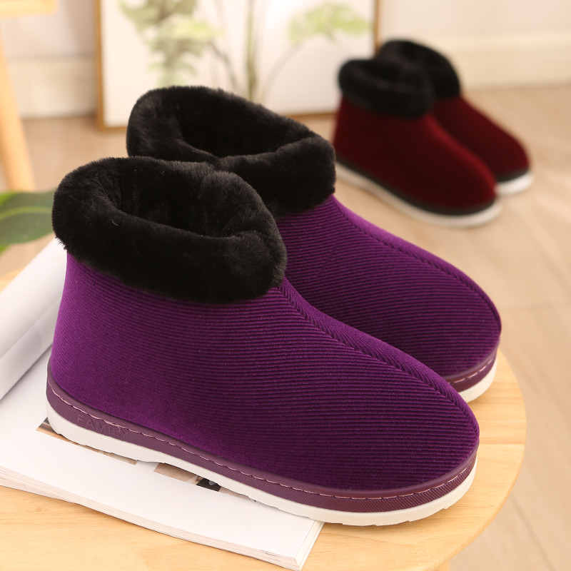 加绒 全包跟女男防滑老人奶奶毛棉鞋 中老年人高帮秋冬季 保暖棉拖鞋