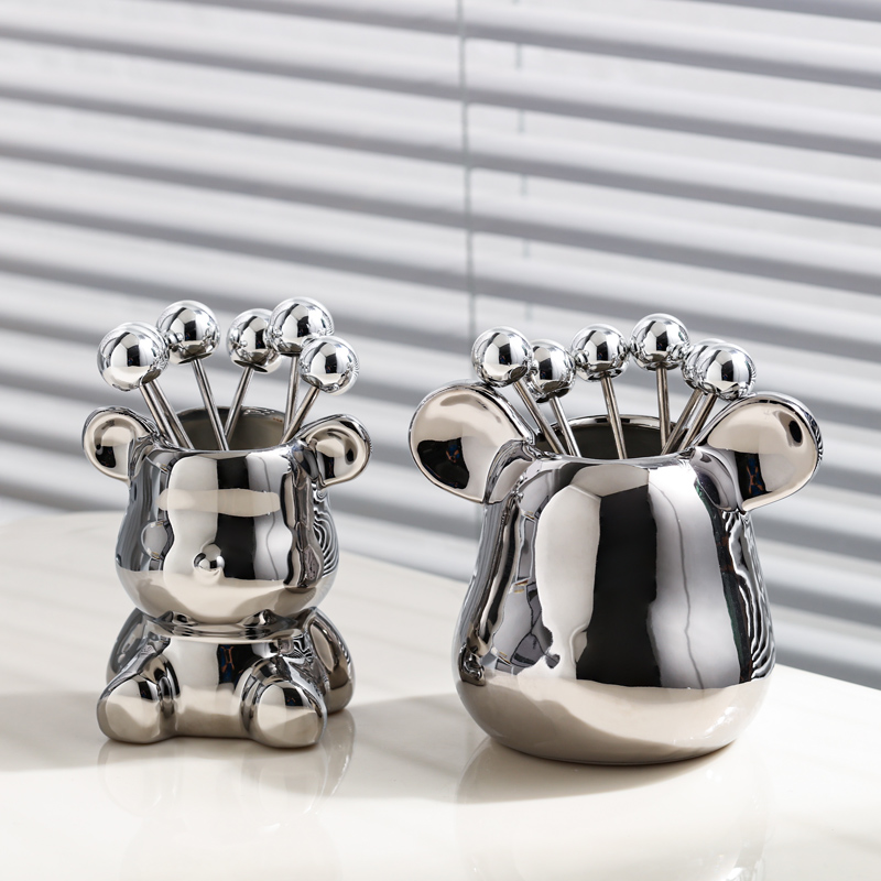 轻奢水果叉餐具不锈钢可爱创意收纳罐家用刀叉水果签叉子收纳套装