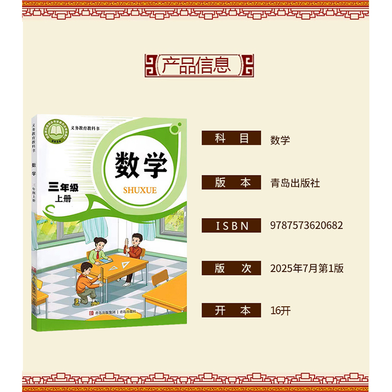 义务教育教科书三年级上学期数学课本青岛出版 三年级上册数学课本书教材教科书小学教材青岛版 社三上数学六三63学制 2025青岛版 正版