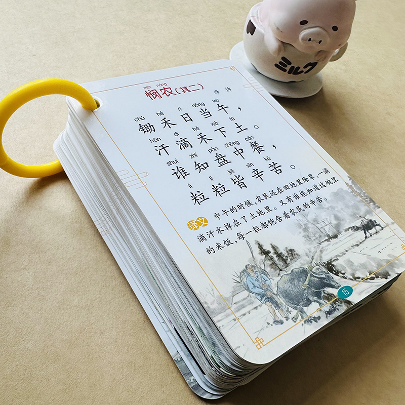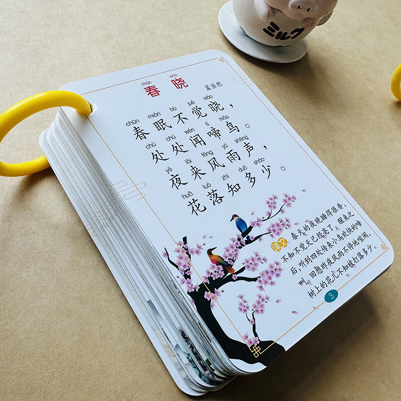 4岁宝宝简单古诗卡带拼音幼儿园学前识字卡片幼升小学一年级宝宝看图学唐诗大字唐诗启蒙卡 学前唐诗卡片儿童早教唐诗启蒙卡0