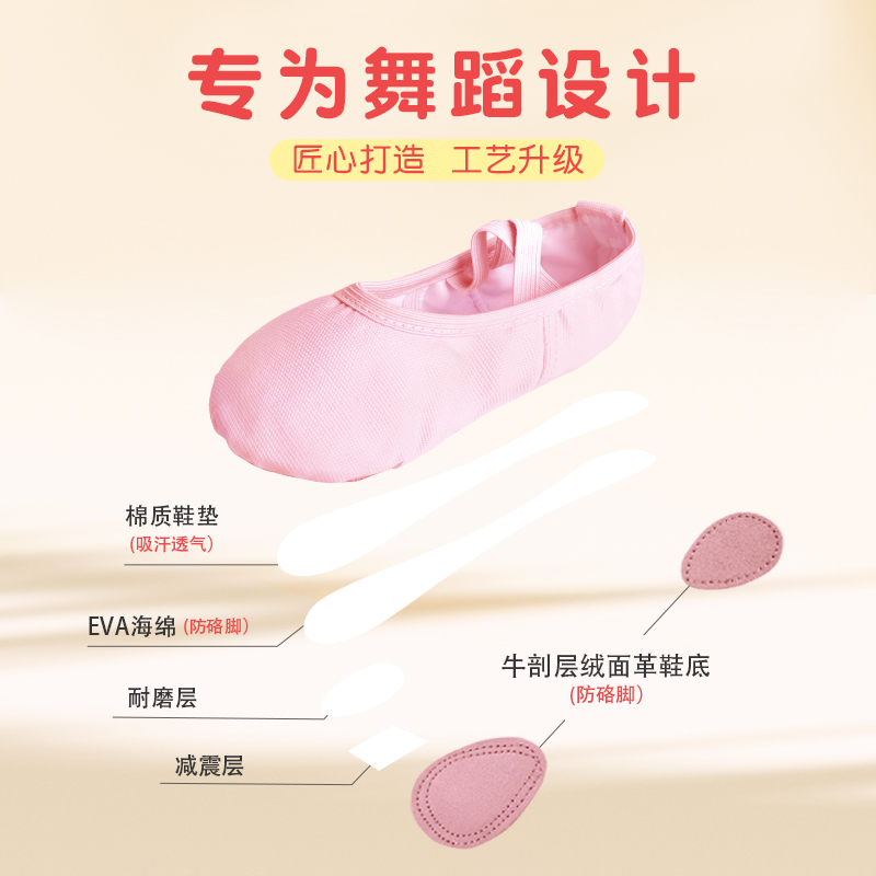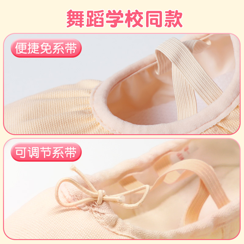子宝宝肉粉色中国舞芭蕾鞋 女童形体跳舞鞋 免系带布头鞋 儿童舞蹈鞋