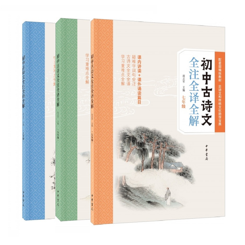疑难字词句全注古诗文全文全译 初中学生课外书籍 3册初中古诗文全注全译全解七八九年级附参考答案 胡志军主编中华书局正版