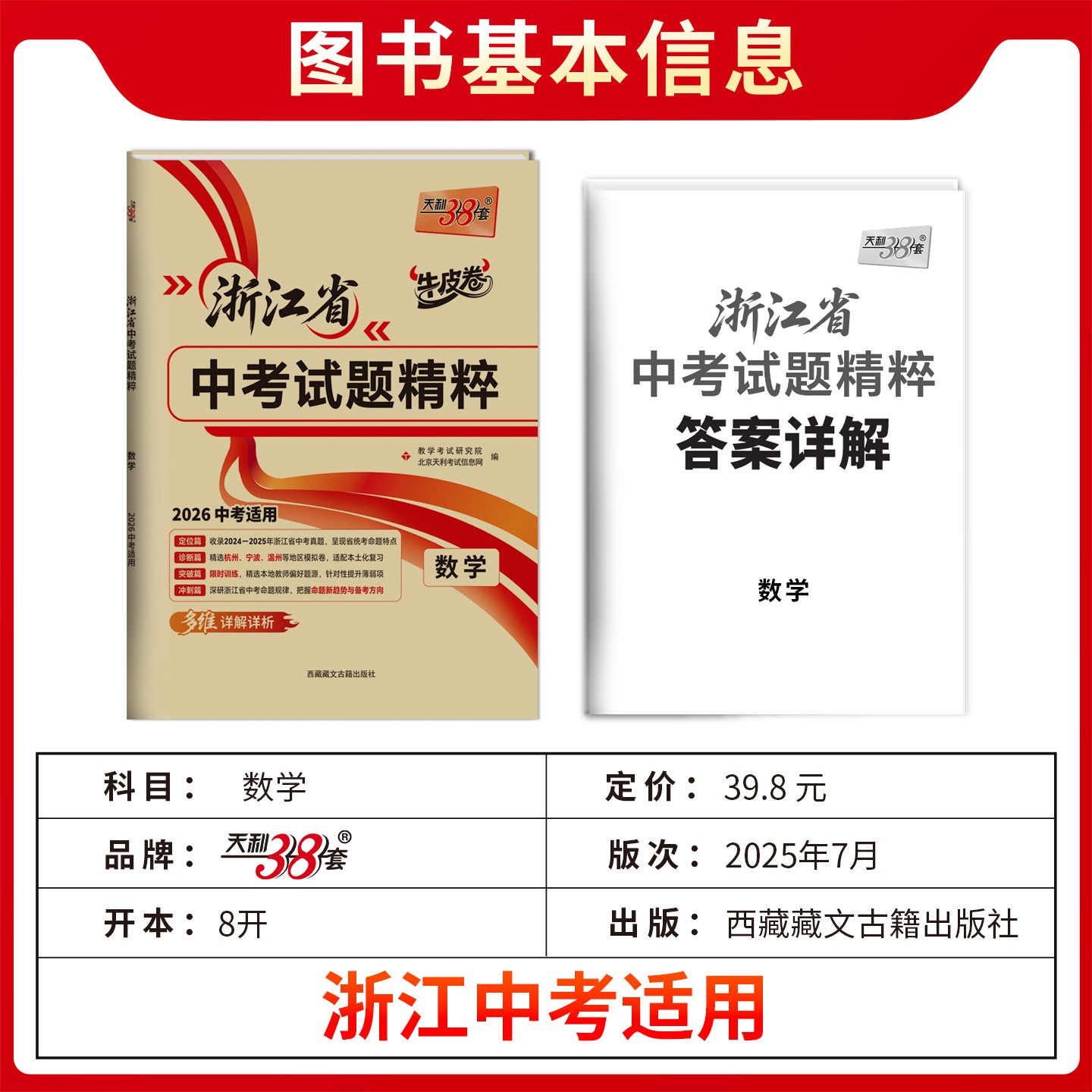 当当网2026浙江专用天利38套新中考浙江省中考试题精粹历年真题卷全套语文数学英语科学历史与社会初三中考总复习模拟卷牛皮卷2025