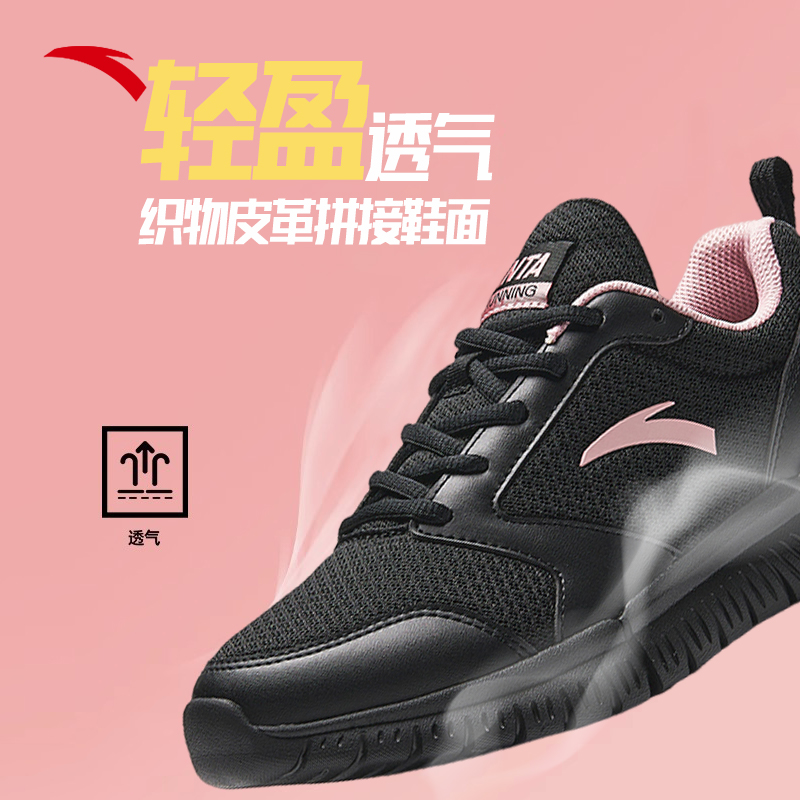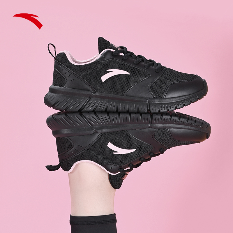 轻便妈妈旅游休闲黑色跑鞋 安踏女鞋 新款 皮面防泼水2025秋季 运动鞋