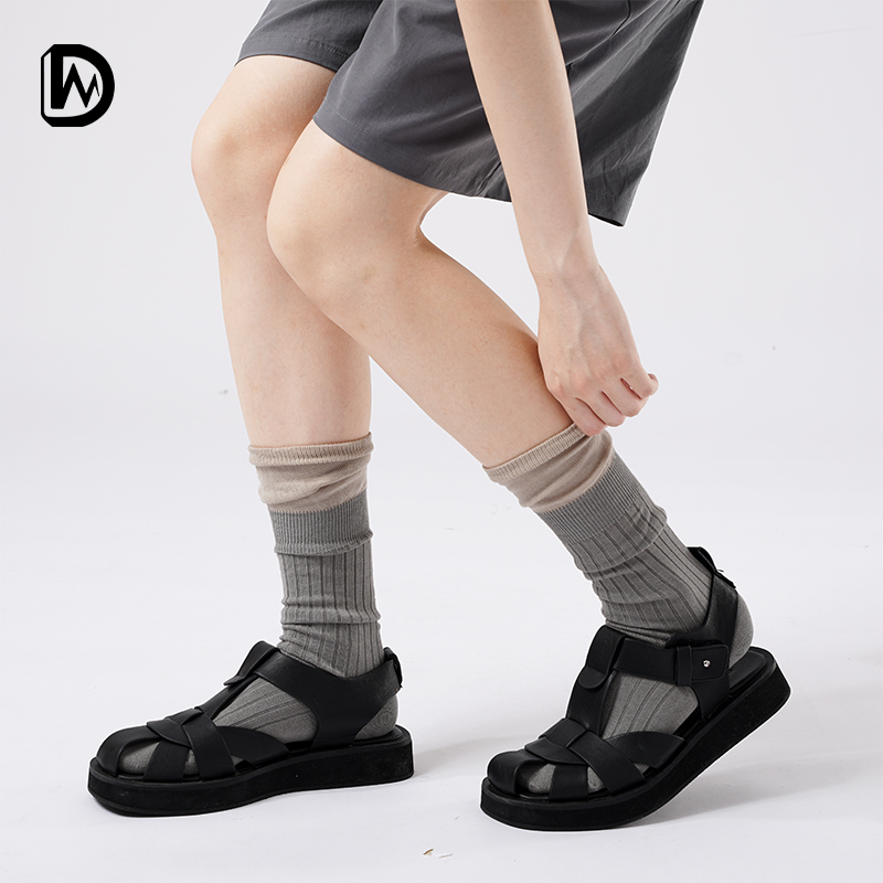 春夏欧美时尚 设计师小众松口灰色潮流袜子女中筒袜月子堆堆袜长袜