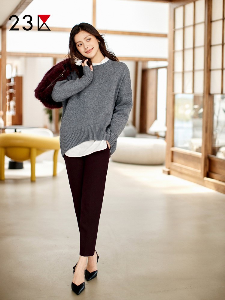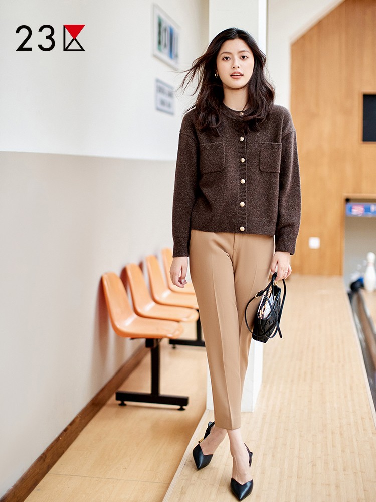 商场同款 休闲裤 通勤职业混纺微弹锥形半松紧腰九分裤 23区日系秋季