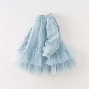 法式 新款 长裙 背心连衣裙2025秋季 弥古复古蓝色背带裙女高级感无袖