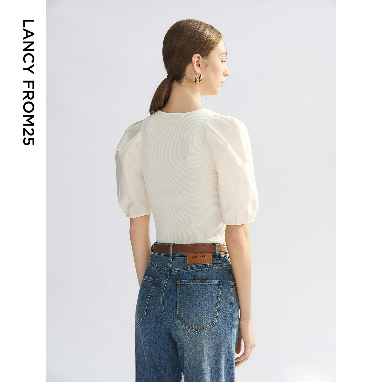 针织衫 条纹短袖 长袖 开衫 毛衣外套 RARN2025秋装 两件套圆领修身 新款